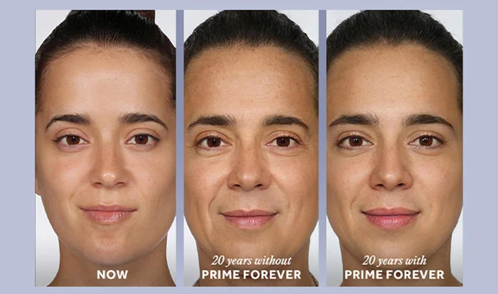 Within minutes, Prime Forever reduces skin ageing activity for 24 hour preservation^ .