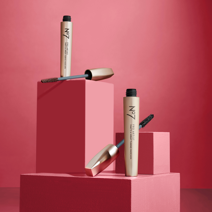 Step Three: Finish the eyes with the No7 Pro Artist That’s A Wrap Tubing Mascara in shade Black by rolling the brush applicator from the roots to the tips of the lashes. Use the tip of the brush applicator to fan out the lashes.
