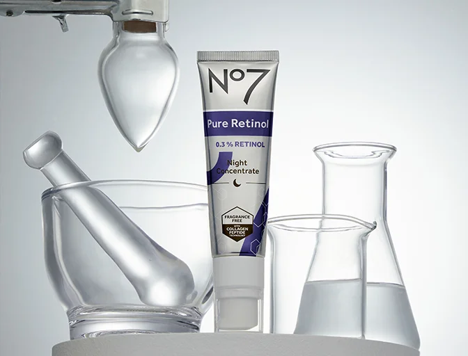 In the early stages of retinol use, you may experience some redness and dryness on your skin’s surface. Don’t worry though, as this is completely normal. With our unique blend of ingredients, we’ve ensured the No7 formula of our 0.3% Pure Retinol is kinder on your skin. You can also help reduce the effects by introducing retinol into your routine gradually, as well as following each use with a rich moisturiser to make sure skin is kept soothed and hydrated.