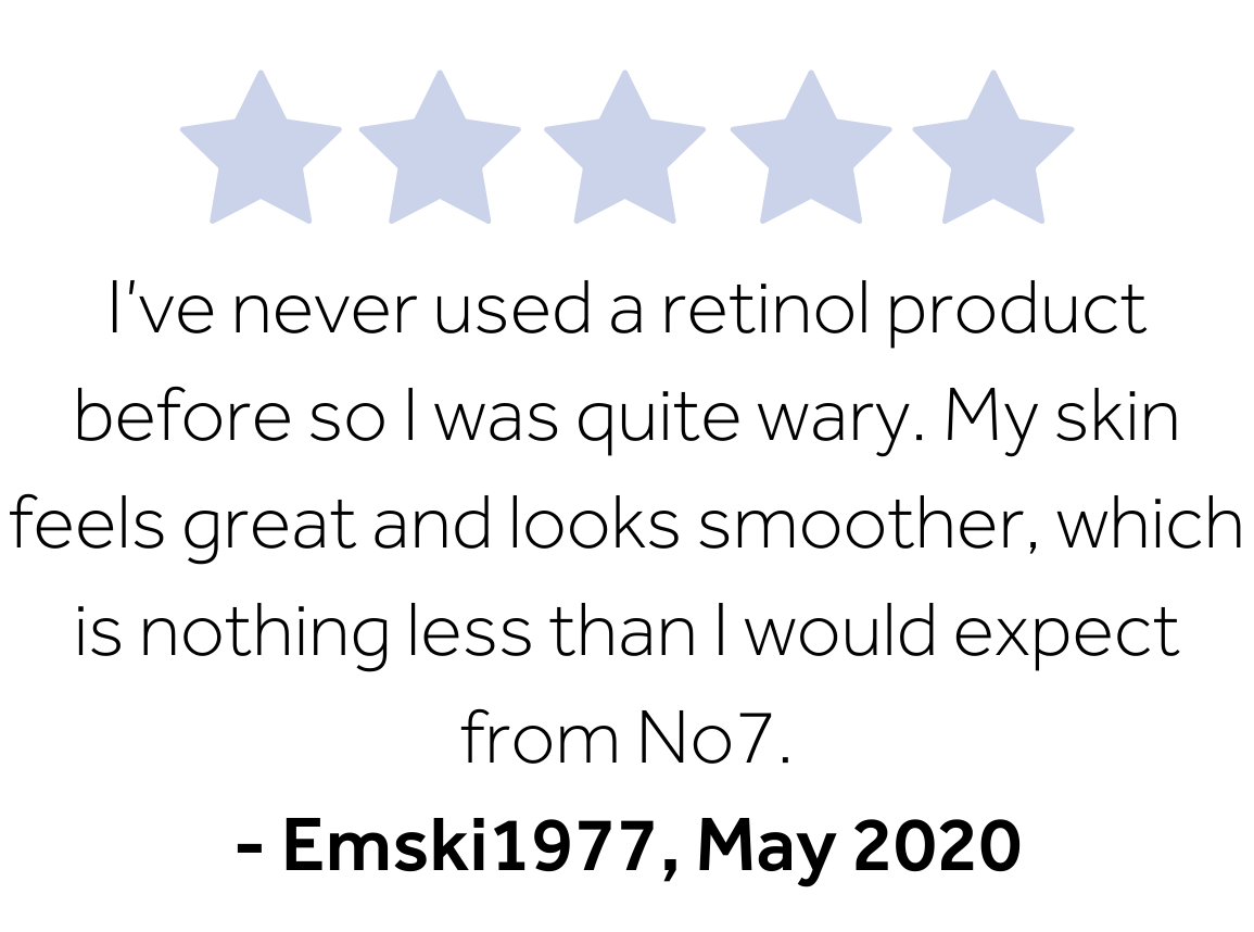 Our new clinically proven No7 Advanced Retinol 1.5% Complex Night Concentrate reduces the look of deep wrinkles, fine lines and pigmentation to live skin feeling refreshed, renewed and restored. No7 helps you wake up to brighter-looking, smoother-feeling skin.